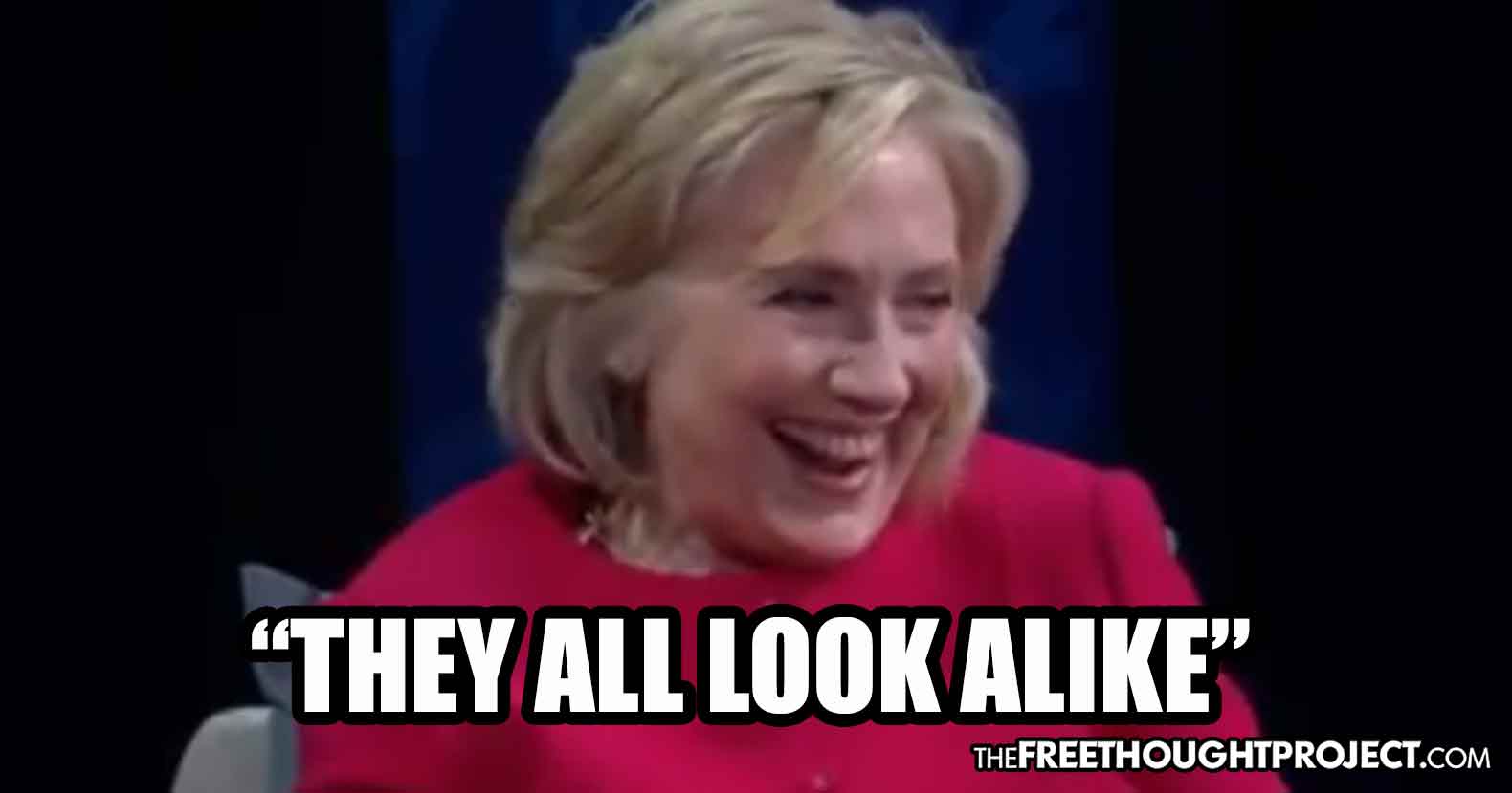 "Yeah, I know they all look alike,” Clinton joked, triggering howls of laughter from the apparently mind-numbed audience.