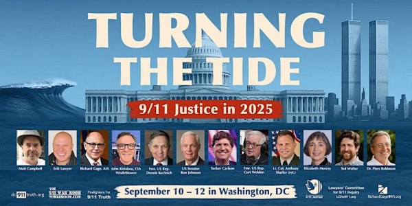 Over the course of three days, the event called Turning The Tide: 911 Justice In 2025 will be headlined by such speakers as Senator Ron Johnson, former US representative Curt Weldon, former US representative Dennis Kucinich, Lt. Col. Anthony Shaffer, as well as former Free Thought Project Podcast guests such as Richard Gage of the American Institute of Architects and founding member of Architects & Engineers for 9/11 Truth, former CIA analyst turned whistleblower John Kiriakou, independent researcher Xander Arena, as well as one of the founding fathers of the 9/11 truth movement independent journalist and filmmaker Jason Bermas.