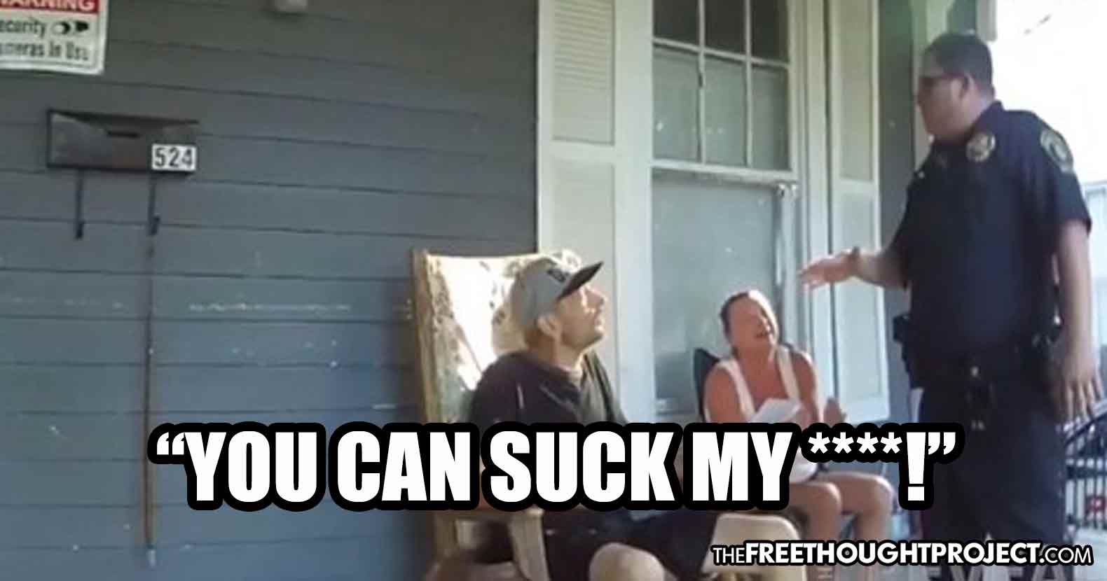 As the video shows, Wick then called his supervisor on his cell phone and said, “and he’s like, ‘well just never mind, I’m not going to give you my information.’ And I told him, ‘well you can suck my d***!’ And they flipped out.”
