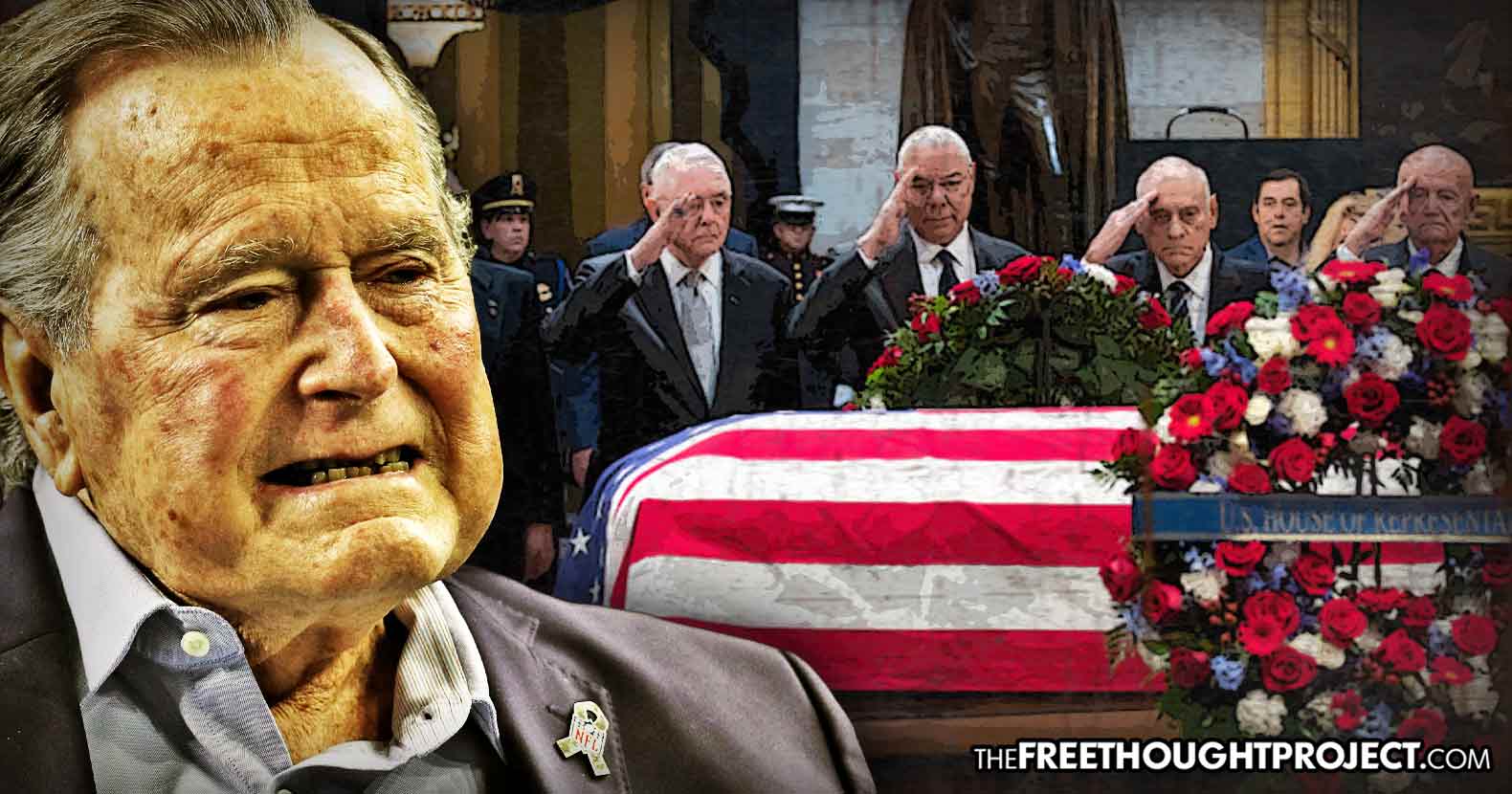 Sadly, however, these are not the crimes we are discussing today. In fact, we aren't discussing any crimes. Instead, every television station, radio frequency, and mainstream media website has been bowing at the alter of George H.W. Bush, cramming horse manure into the faces of Americans as both liberals and conservatives alike, eat it up.