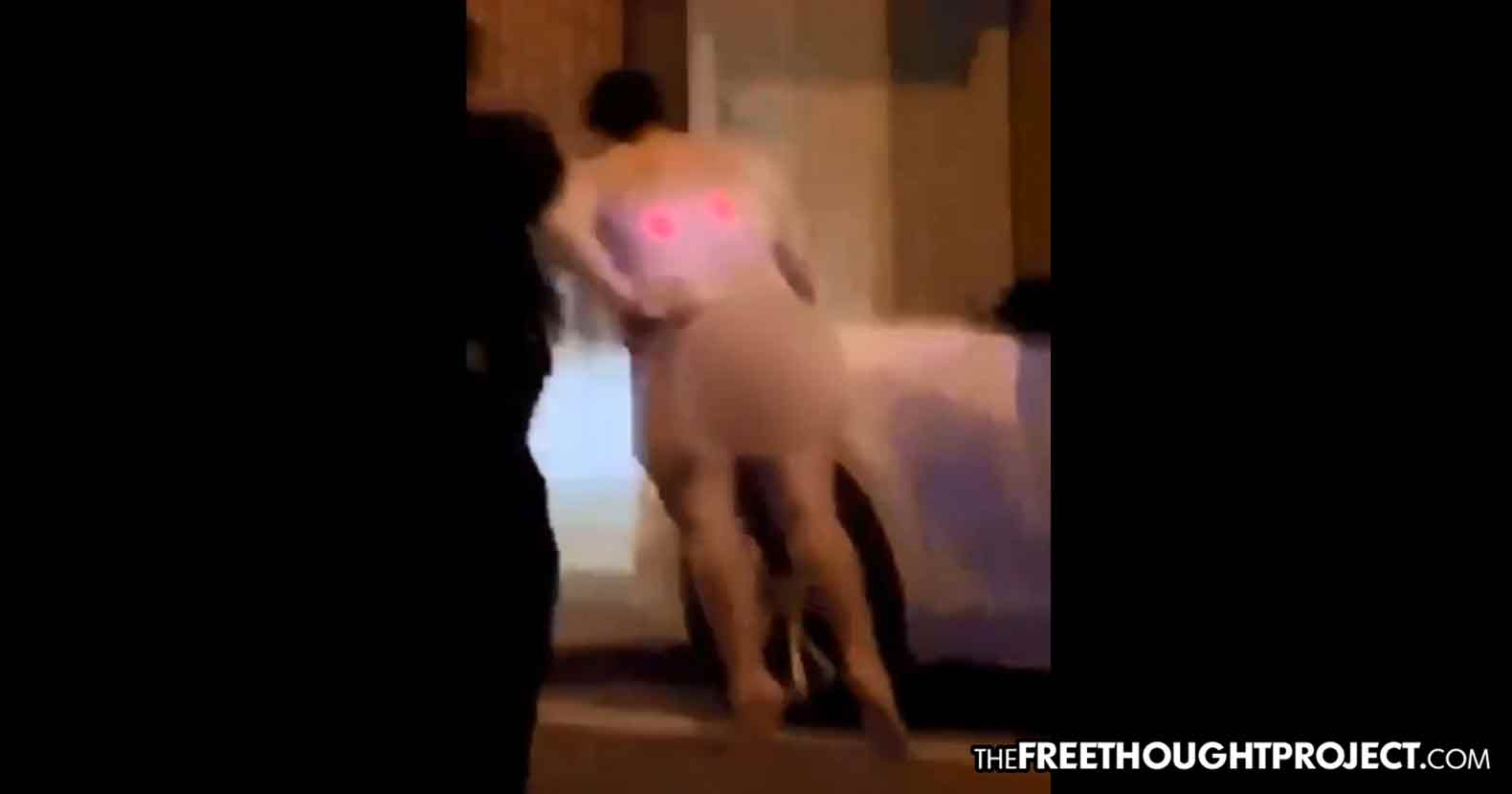 Columbia, MO — A video was shared with the Free Thought Project this week showing what some are calling an entirely unnecessary use of force. The video in question shows multiple Columbia police officers surround a naked man, who is trying to walk away from them, before tasering him in the back, sending him smashing into the concrete.