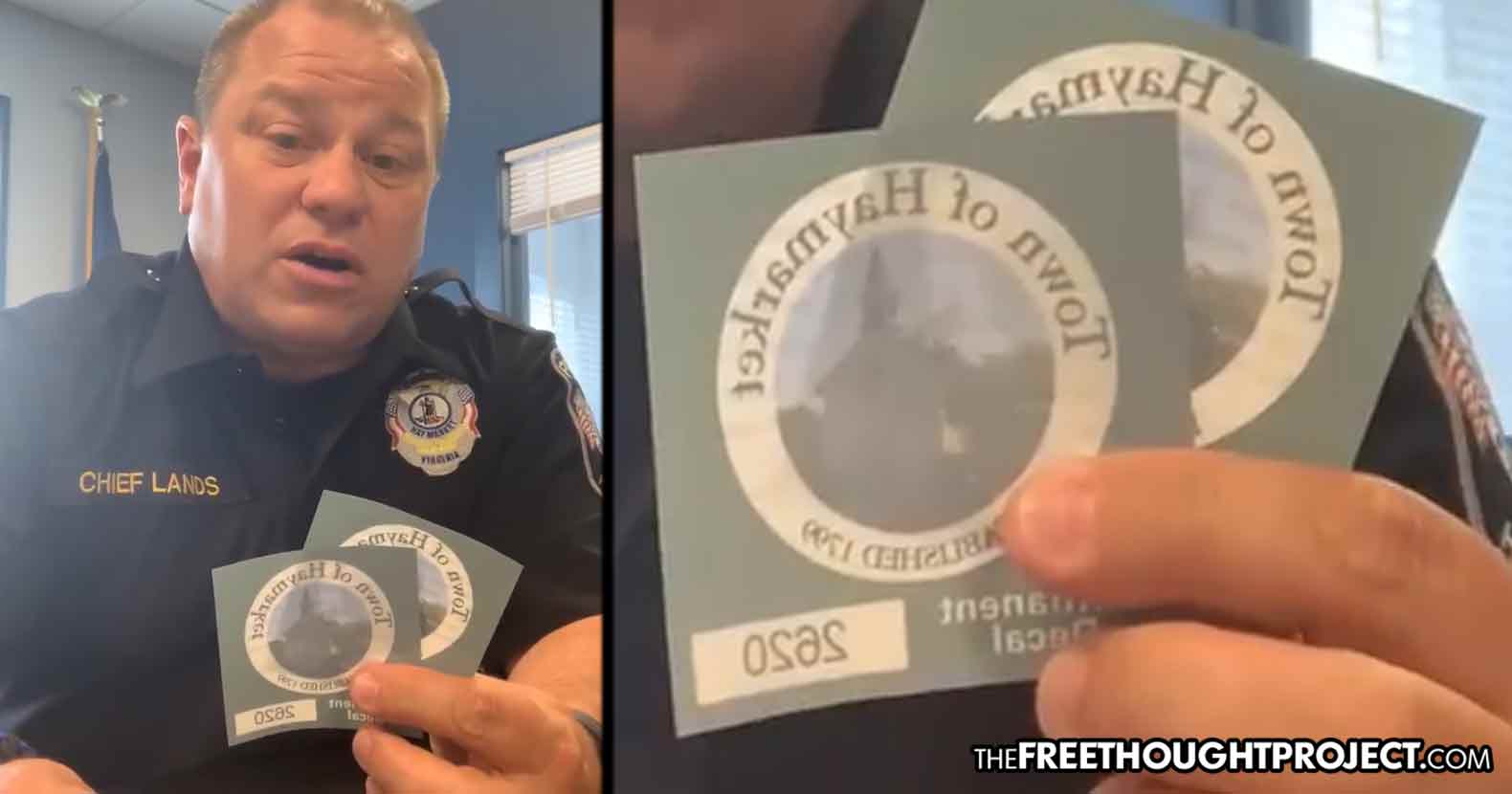 Haymarket, VA -- Common sense, among those who work inside the state, is a rare commodity. Agents of the state, like those who work in law enforcement, often become so blinded to reality by 'just doing my job' they throw logic and reason to the wayside, choosing authority and force instead. Nothing highlights this blind order following quite like the Haymarket police department in Virginia enforcing the requirement for citizens to purchase a $15 sticker for their vehicle and promising to steal their money if they do not comply.