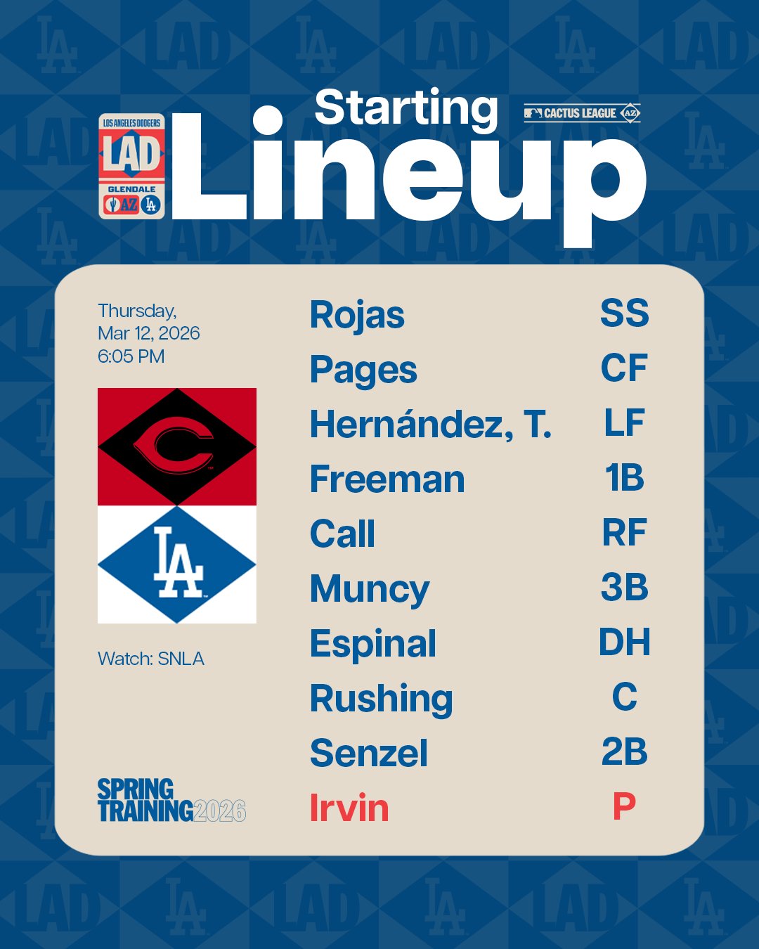 Dodgers Post Lineup Card Against Reds