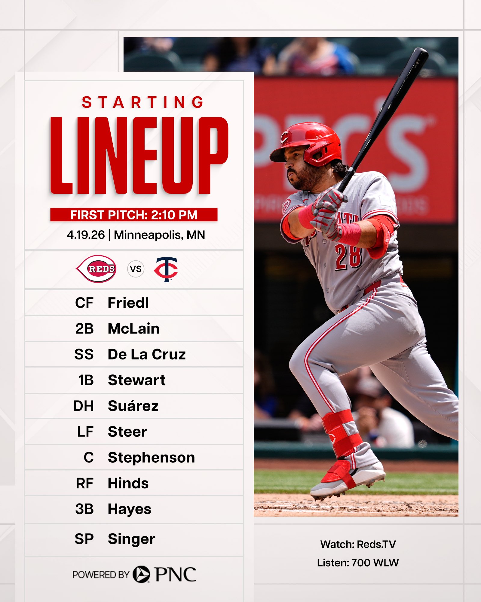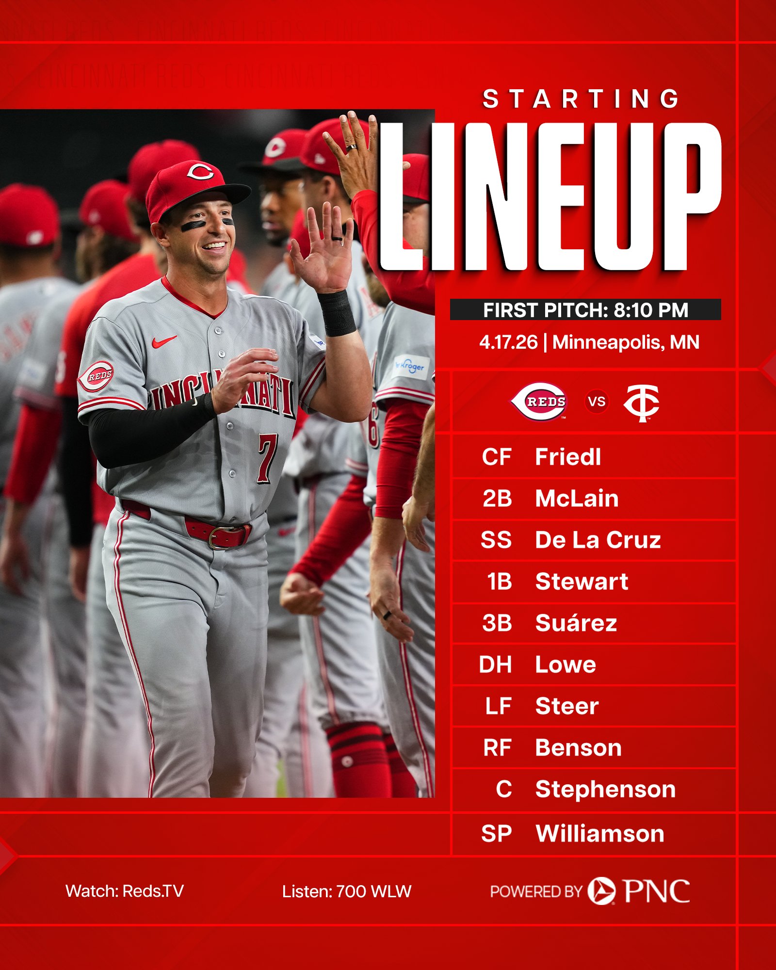 Reds Share Lineup for Twins Game
