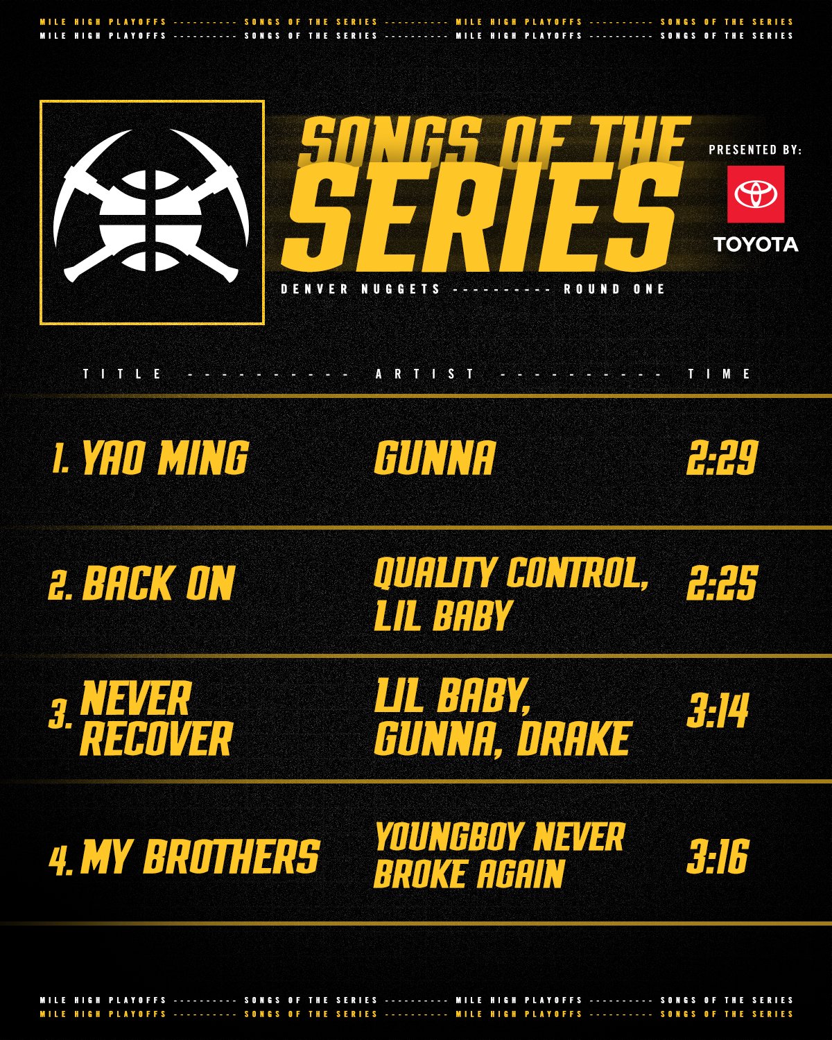 Denver Nuggets reveals songs of the series.