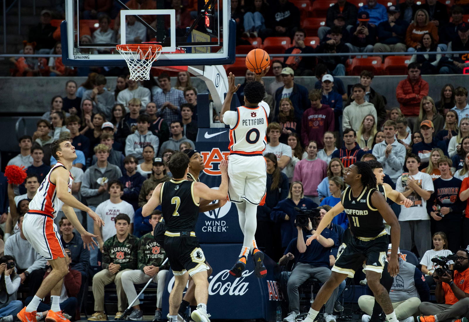 While the first few minutes of the contest were tightly contested, it didn't take long for the Tigers to pull ahead. After Elyjah Freeman hit a pair of free-throws to even the score with 17:26 remaining in the first half, however, Auburn never let Wofford take another lead.