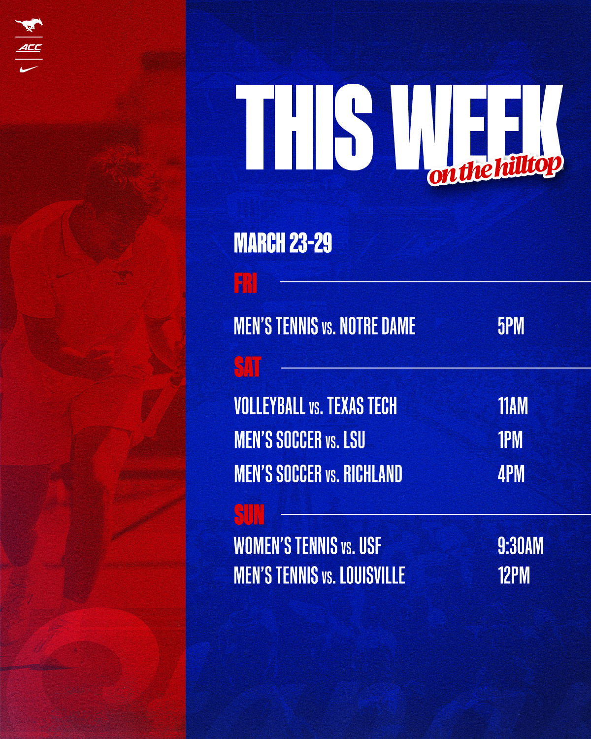 SMU Mustangs Athletics post the following on x: "Matchups you don’t want to miss"
