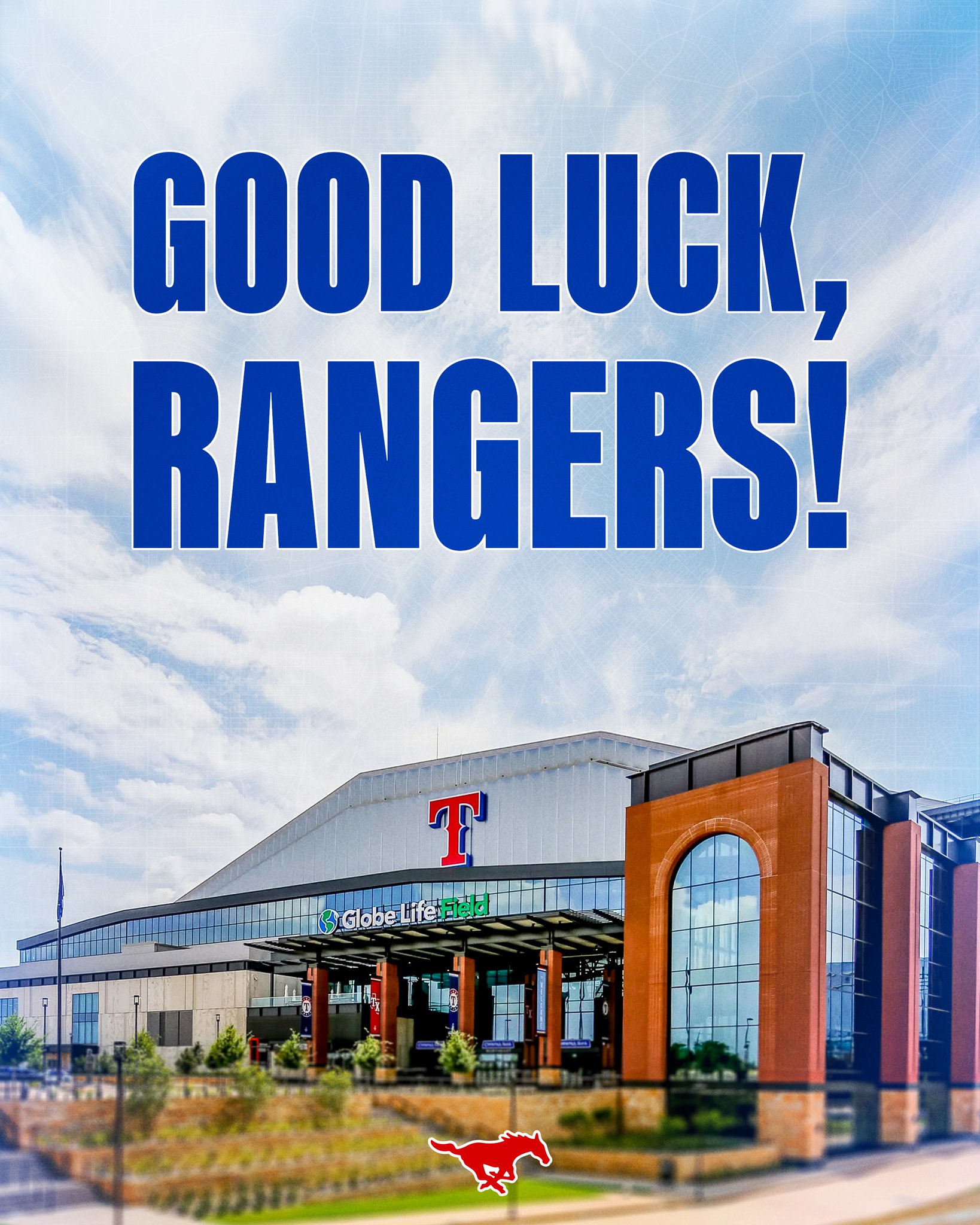 The SMU Athletics twitter posts the following on x: "Good luck this season, @Rangers!"