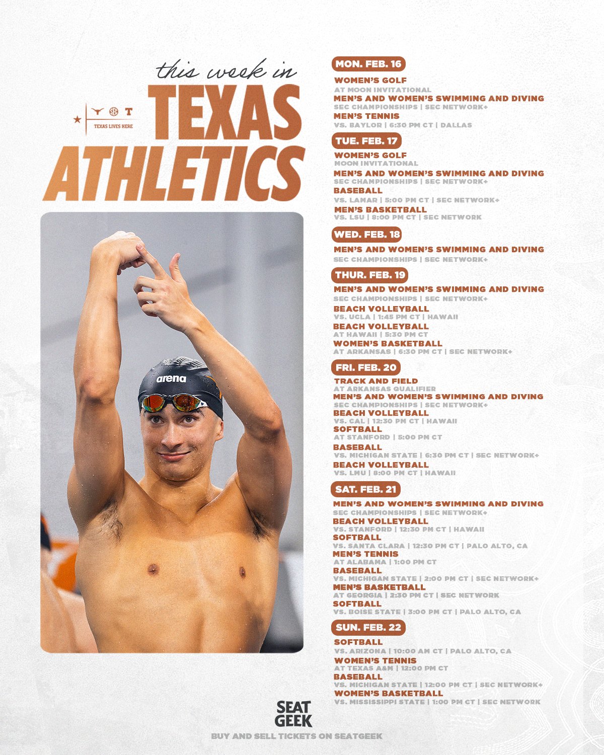Texas Longhorns Athletics Release their schedule stating "another packed week for the Horns"