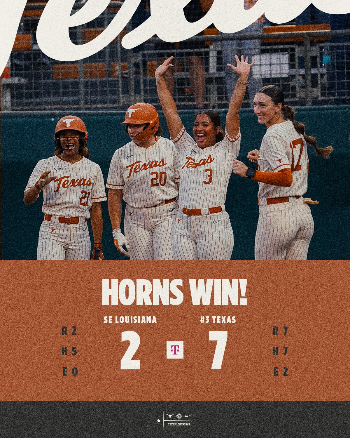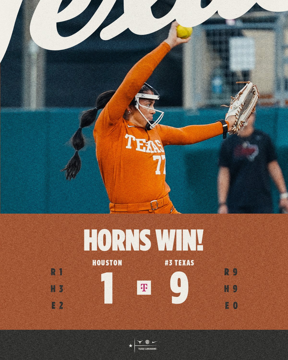 Texas Longhorns Women's Softball posts: "A win to start the weekend" as they beat Houston 9-1