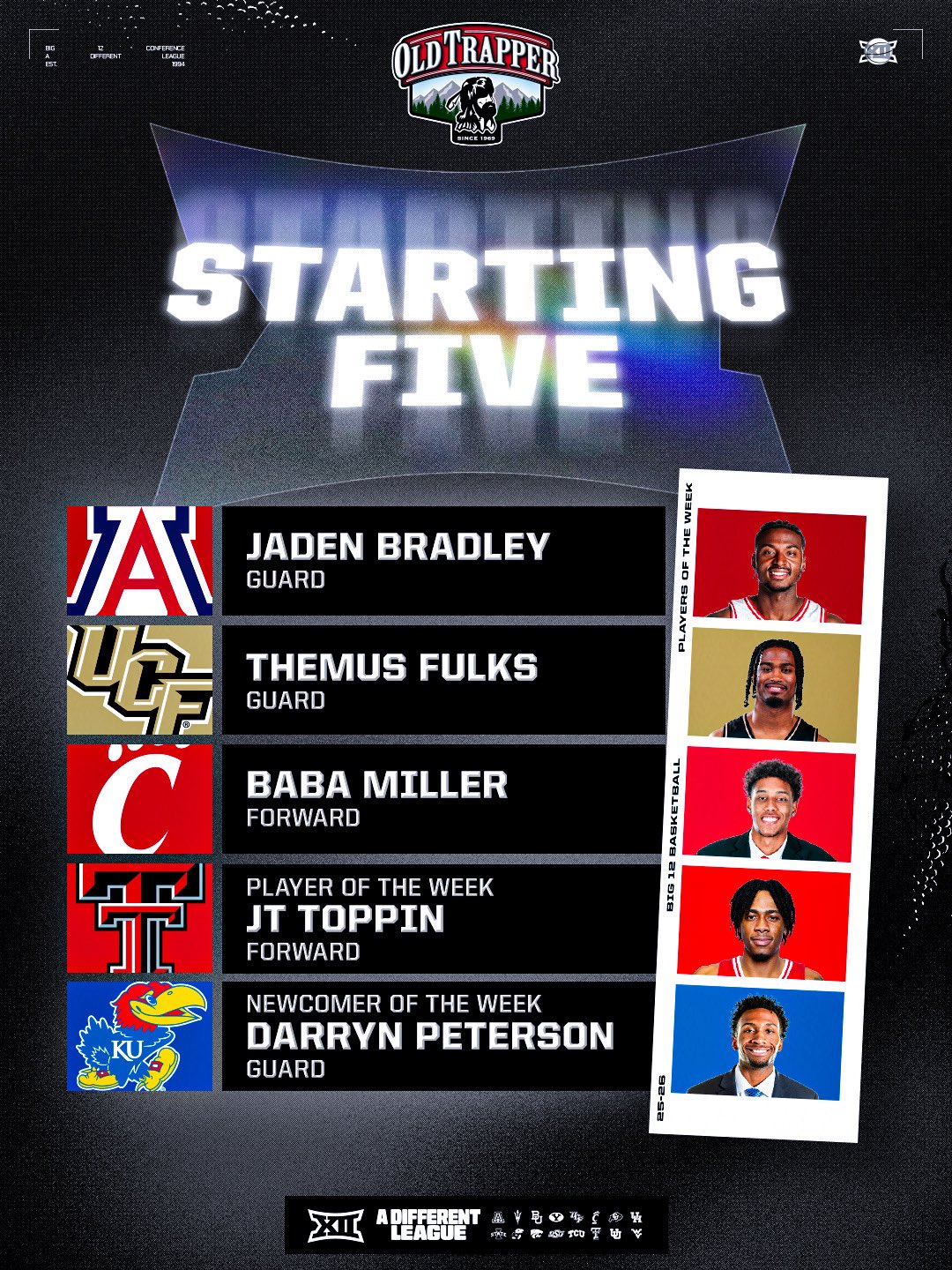Themus Fulks Makes Third Big 12 Starting Five This Season